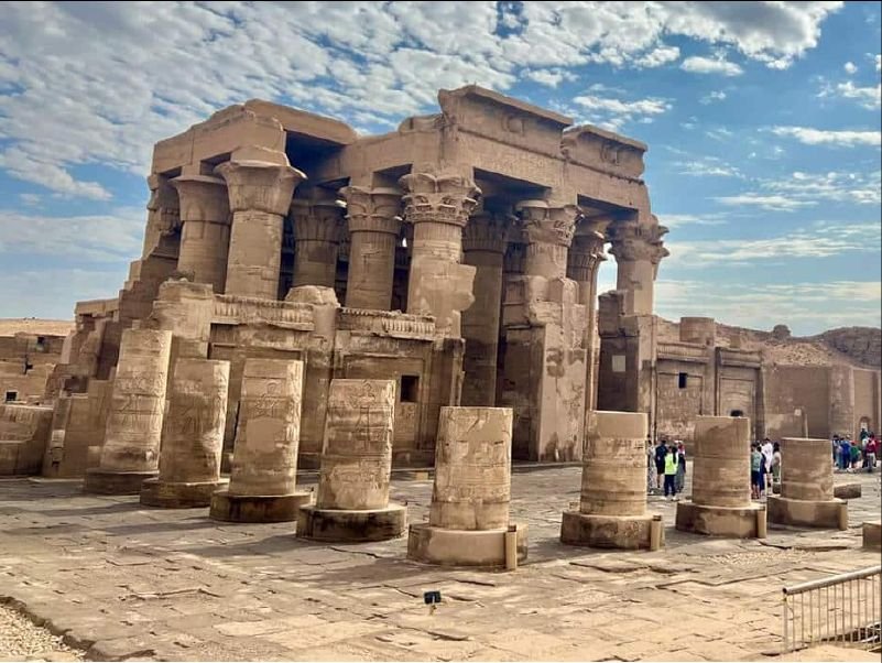Explore the Temple of Kom Ombo, shared by Sobek and Horus, where detailed reliefs show scenes of medical tools, daily tasks, and rituals along the Nile.
