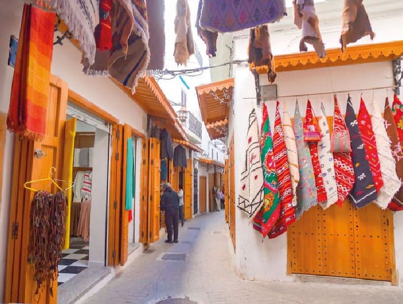 The route continues to Mendoubia Gardens and the Grand Socco, once the city’s main social crossroads.